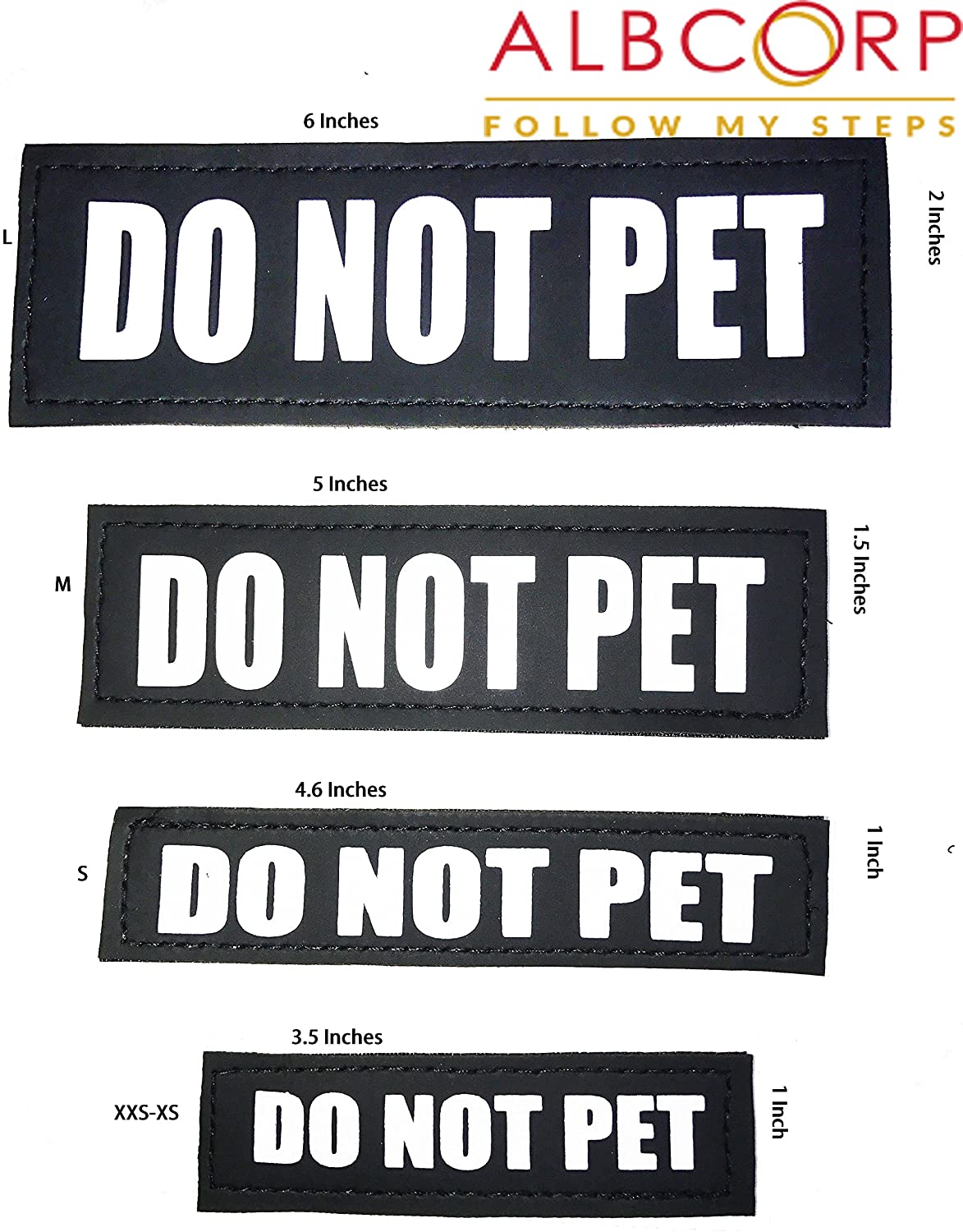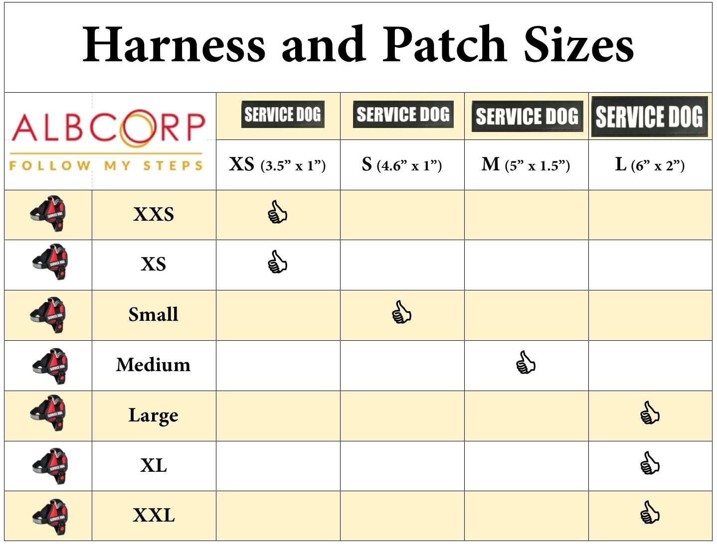 You will also receive assistance and answers to your questions about our Patches or Vests Harness from a professional and knowledgeable customer service team with more than 10 years of experience working with pets. ALBCORP Service Dog Patches are available in seven designs: "SERVICE DOG", "IN TRAINING", "DO NOT PET" "THERAPY DOG" “SERVICE DOG IN TRAINING” “EMOTIONAL SUPPORT” “BEST FRIEND”. Each service dog patch is constructed from durable polyester and has a Hook backing. It can be attached to any service dog vest with a Loop Strip or sewn onto vests if no Loop attachment is available. These patches make it easy to update your dog's status and help you save money by allowing you to use a single vest for multiple dogs. Do You Need More? Contact us, and we will Take Care of You. Click the Add to Cart Button Now!