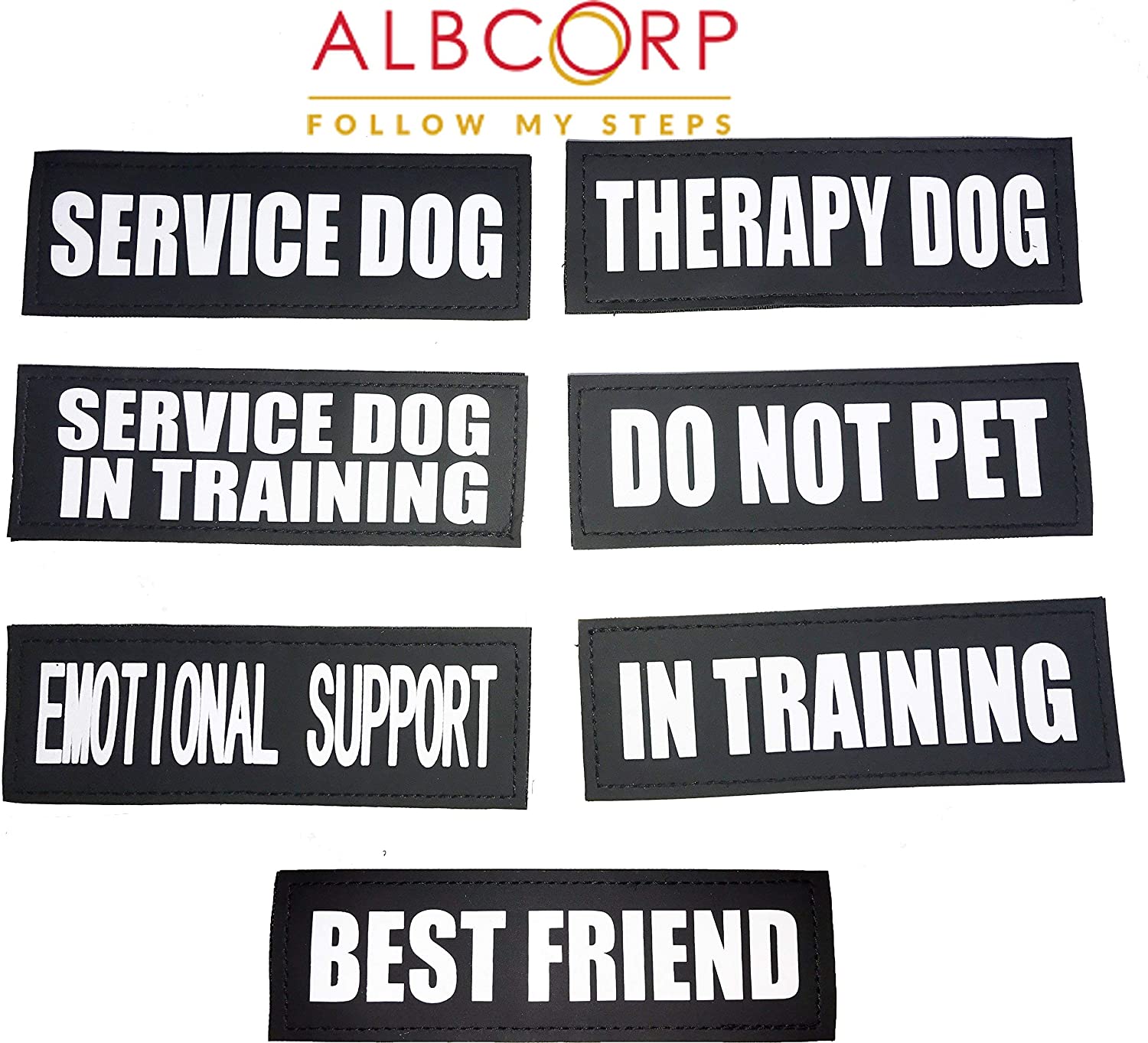 Albcorp Reflective Dog Patches with Hook Backing -Service Dog, Service Dog In Training, Do Not Pet, Emotional Support, Therapy Dog, Best Friend, In Training for Animal Vest Harnesses, Collars, Leashes