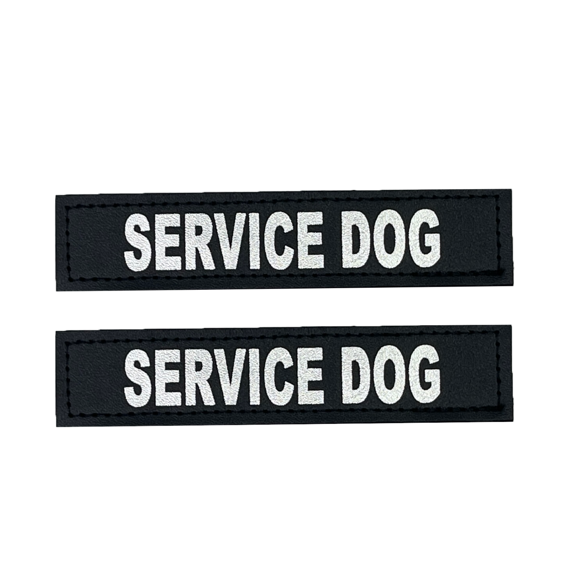 - Our Service Dog Patches with Hook Backing allows you to change the identification of your service dog vest or harness in just a few minutes, featuring large, reflective lettering that is recognizable even from a distance.